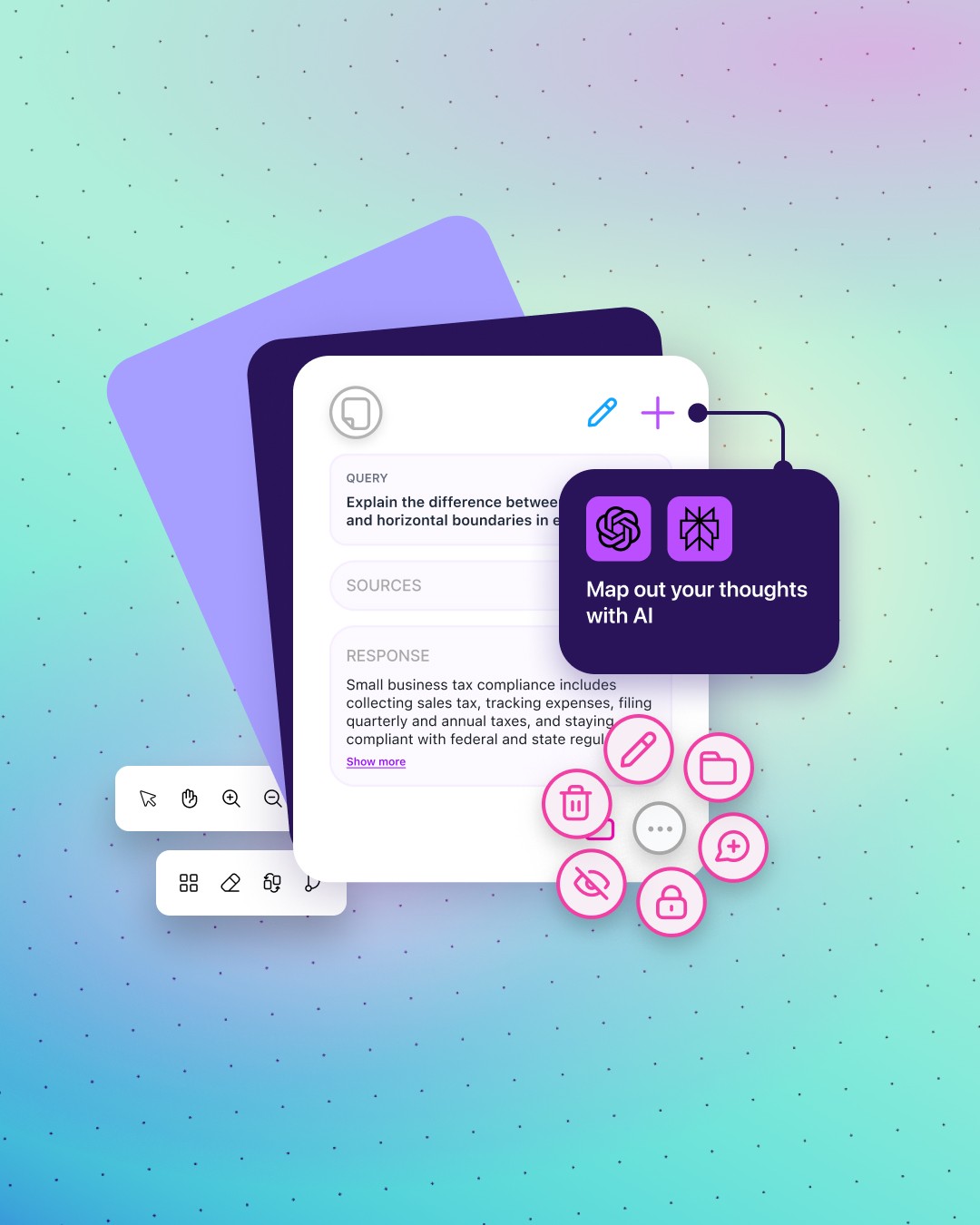 Easy to use controls to add, connect and analyze your ideas, along with more powerful functions to delve deeper